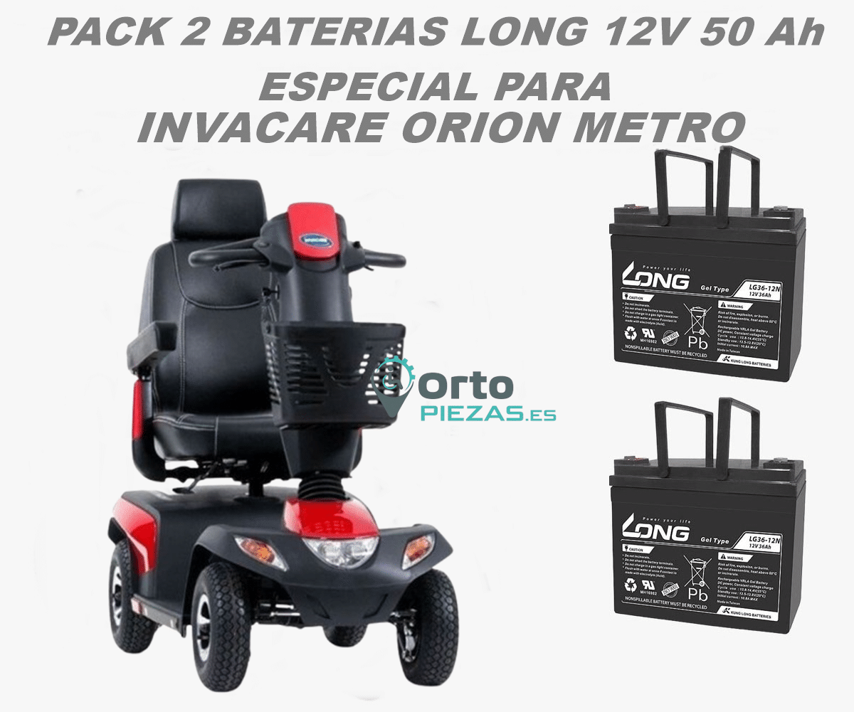 Baterías Invacare Orion Metro 50Ah – Pack de 2 baterías para scooter
