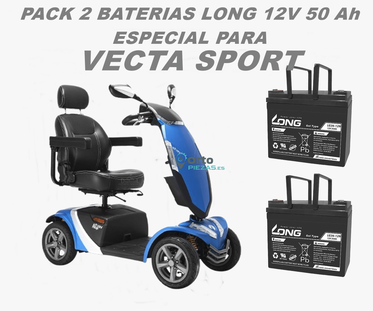 Este producto es un pack de 2 baterías Vecta Sport, diseñado como recambio específico para el scooter Vecta Sport de la marca Ayudas Dinámicas.