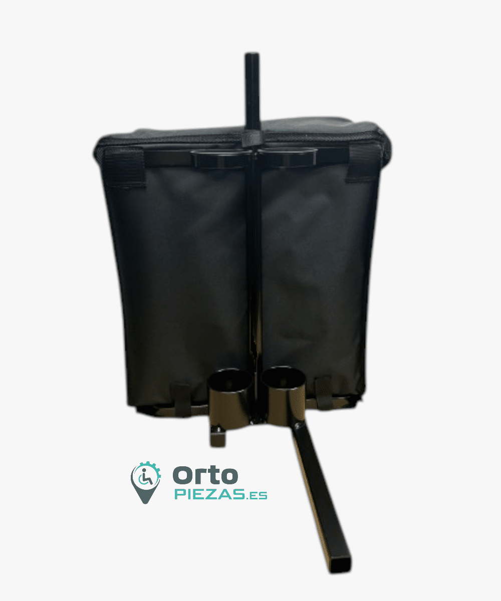 La bolsa trasera con portabastones doble es el accesorio ideal para scooters de movilidad. Diseñada para ofrecer un almacenamiento extra, permite llevar pertenencias personales de forma segura y organizada. Además, cuenta con un soporte doble para bastones o muletas, brindando mayor autonomía y comodidad en cada trayecto.