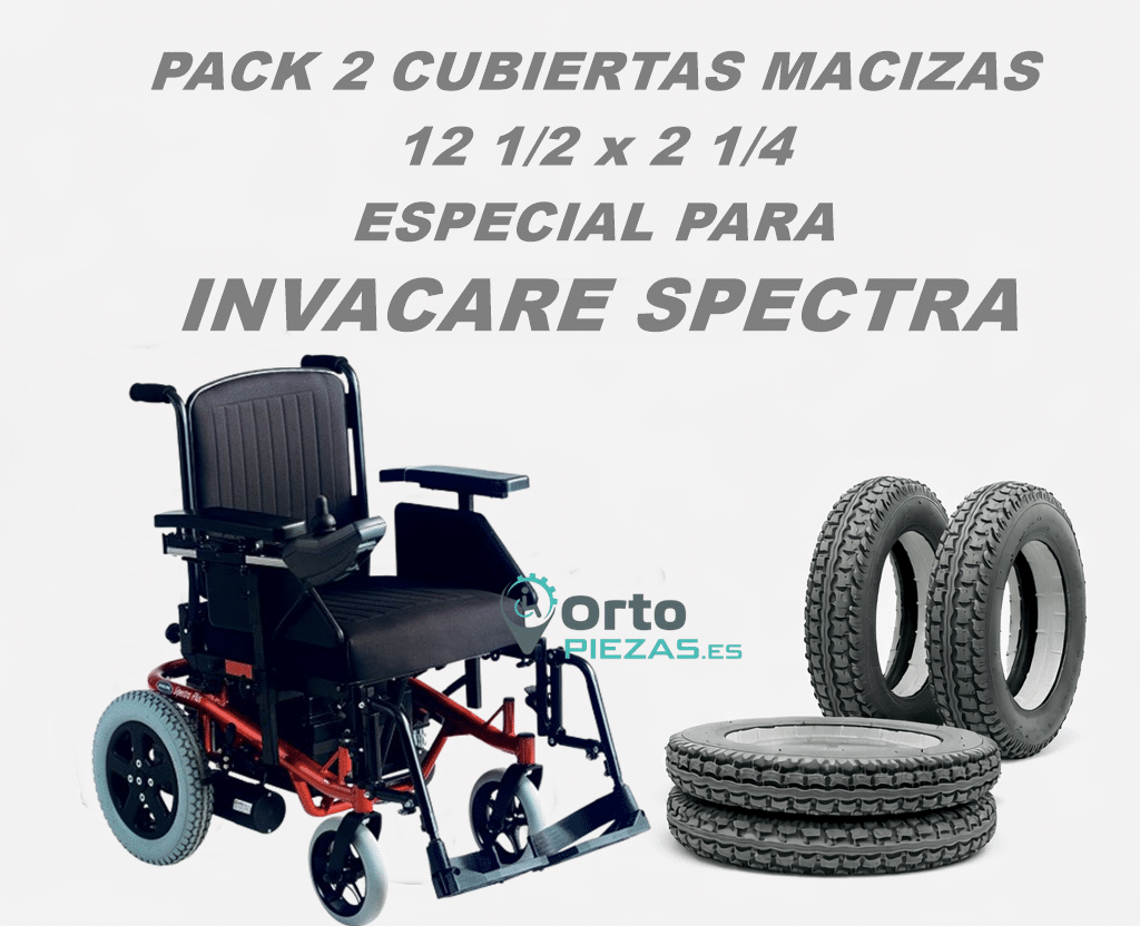 Recambio específico para silla Invacare Spectra. Pack de 2 cubiertas macizas antipinchazos 12 ½ x 2 ¼ (ETRTO 62-203). Sin aire, sin pinchazos y mayor durabilidad.