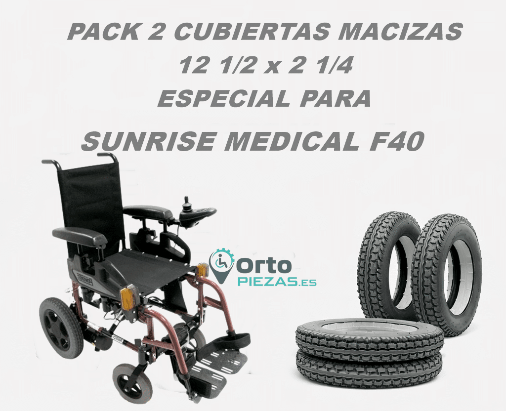 Este producto es un pack de cubiertas Sunrise Medical Quickie F40 (2 unidades) para sustituir las cubiertas originales de la silla de ruedas Sunrise Medical Quickie F40